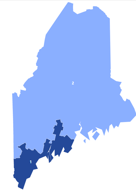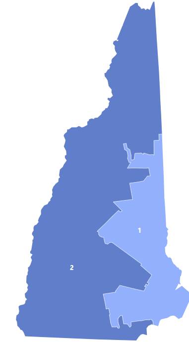 New Hampshire’s new map makes minor changes to its two districts. NH-1 shifts about half a point to the right and NH-2 shifts about a tenth of a point to the left.