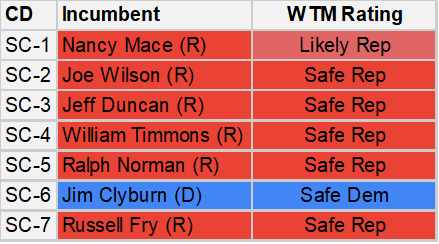 The only South Carolina district that currently receives a non-safe rating is the 1st. That earns it a profile below.