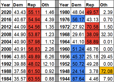 2020 Presidential result: Trump 53.5%, Biden 44.9%