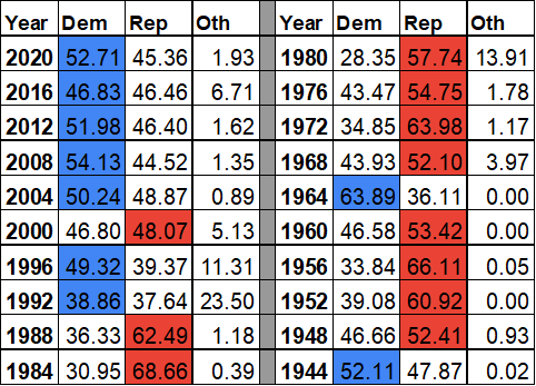 2020 Presidential result: Biden 53.6%, Trump 44.1%