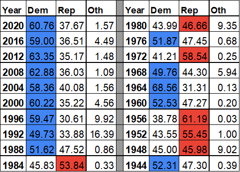 2020 Presidential result: Biden 54.5%, Trump 44.4%