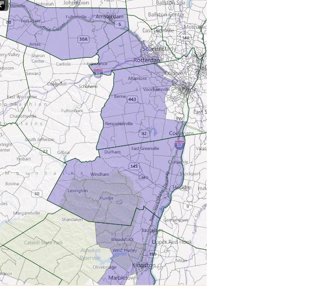 In terms of aesthetics, it’s not a monstrosity: a bit long, but not particularly tortured or serpentine. It’s a stretch to say that Amsterdam and the Schenectady area have much to do with Kingston, but the NYS Thruway does serve as a common thread. Regardless, Republicans aren’t seeking awards for clean maps that preserve communities of interest: they want to pick up a free seat.